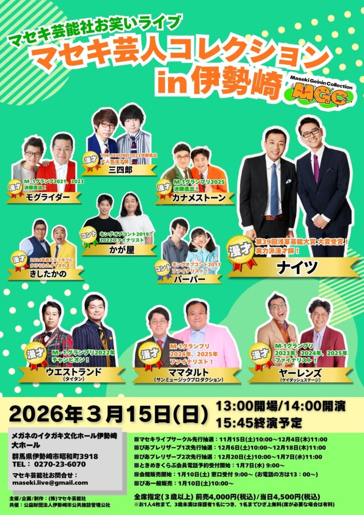 【チケット発売開始】マセキ芸人コレクション in 伊勢崎