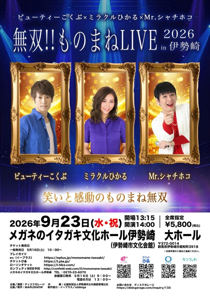 【公演決定】ビューティーこくぶ×ミラクルひかる×Mr.シャチホコ